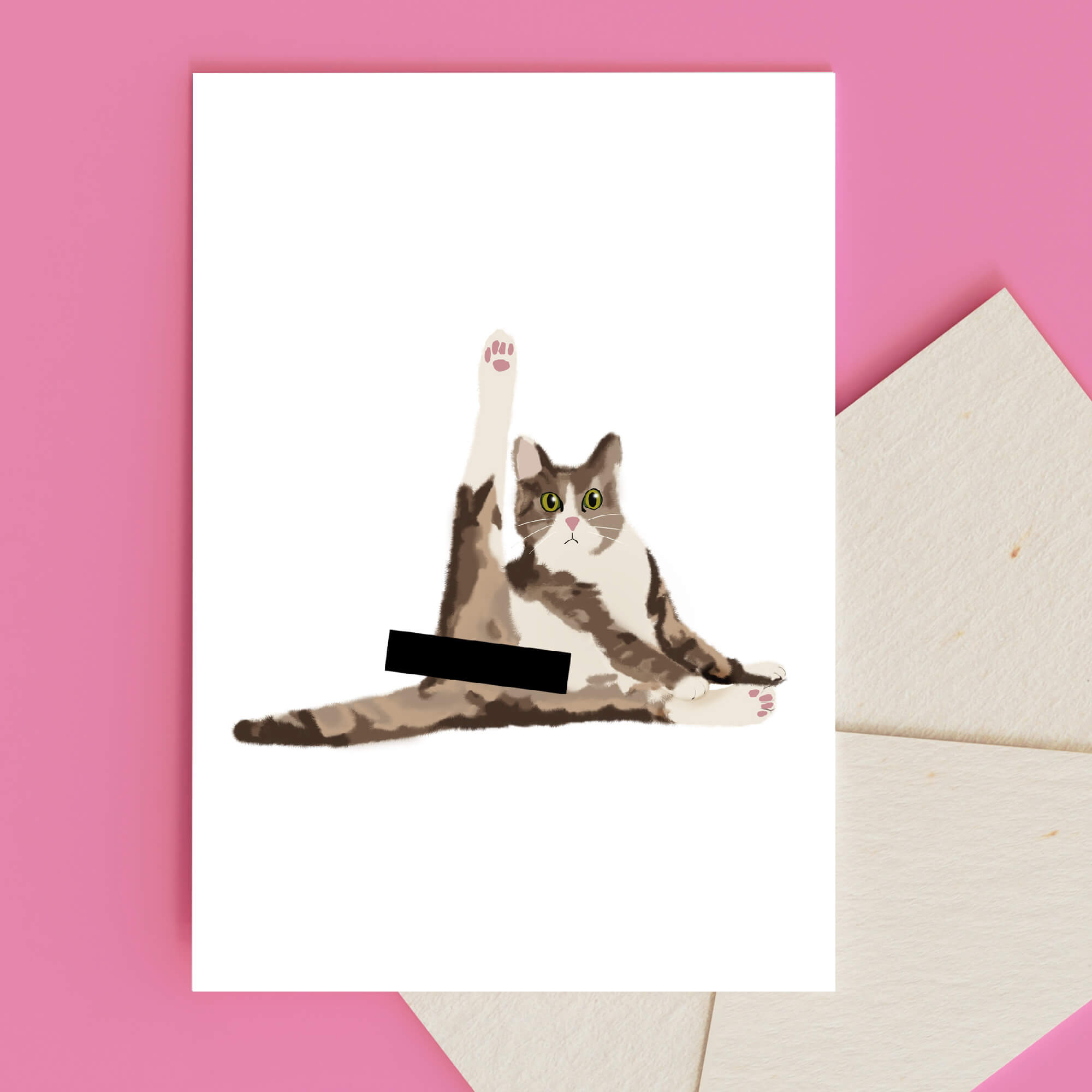 Witzige Katzen Grußkarte mit pinkem Umschlag