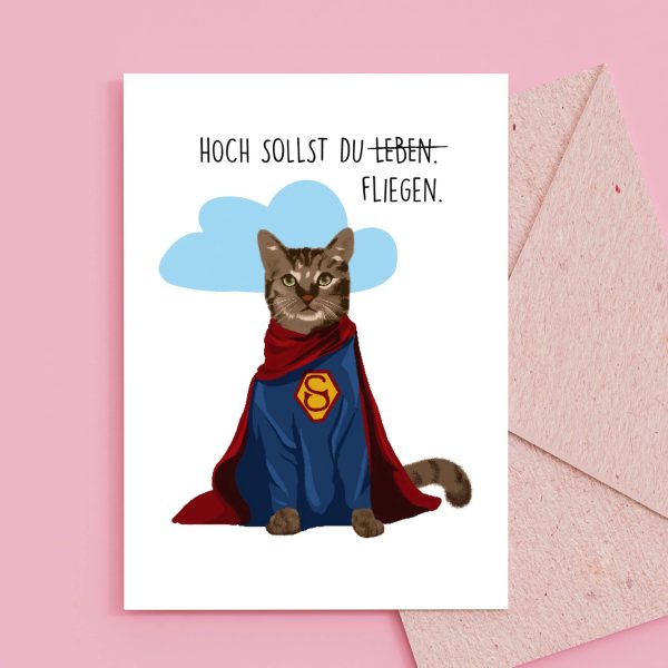 Witzige Katzen Geburtstagskarte mit pinkem Umschlag