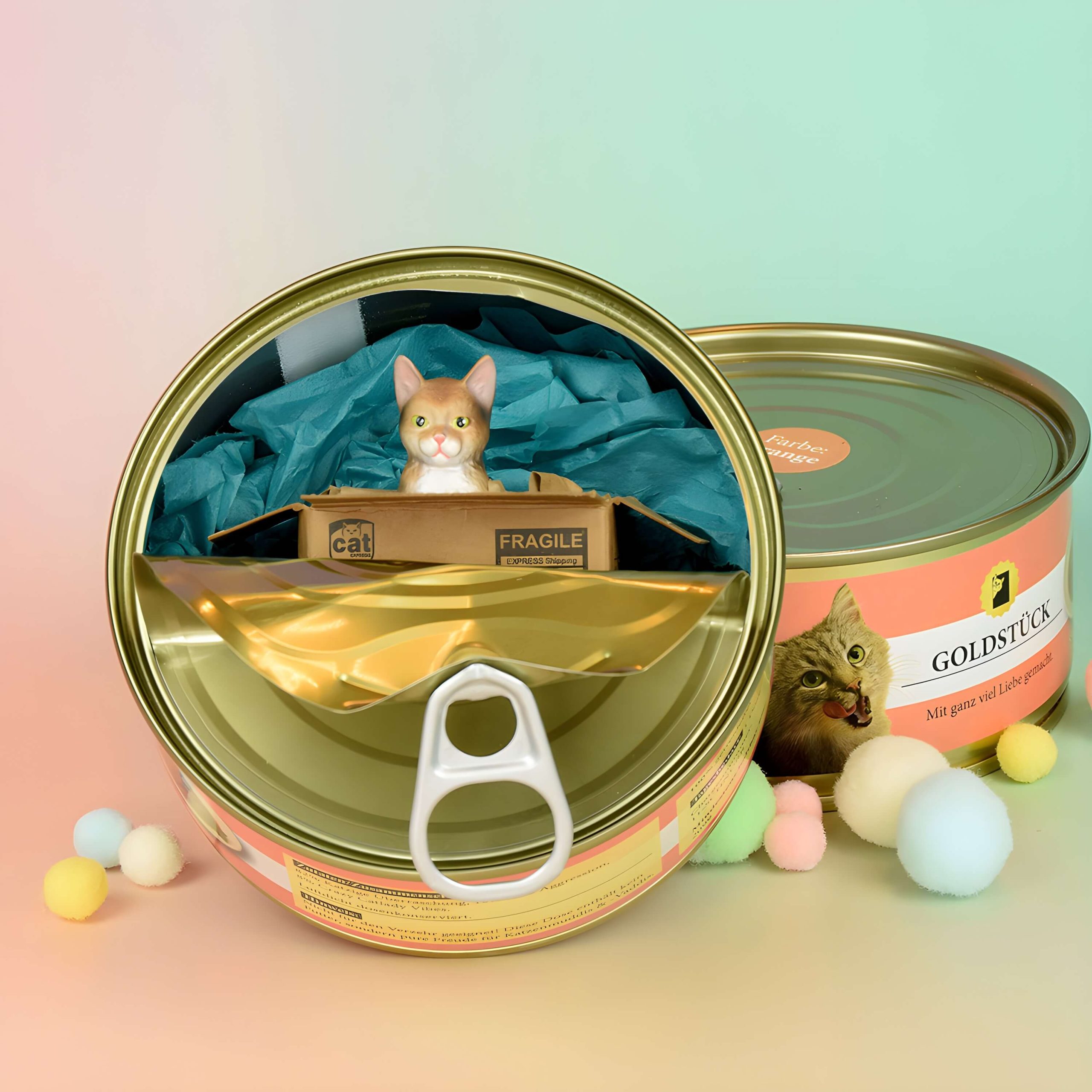 Du kannst wählen zwischen einer Geschenkverpackung in Futterdosen-Form mit Aufreißlasche oder einer kleinen Geschenkbox mit Schleifchen. In beiden Fällen bekommst du eine Mini-Adoptionsurkunde dazu (7,6 x 5,4 cm), auf der du den Adoptanten (Beschenkten) eintragen kannst. 🙂